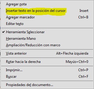 Per inserire il testo, possiamo usare il menu accessibile con il tasto destro del mouse.