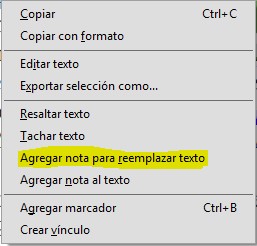 Per sostituire il testo tradotto, dovremo selezionare con il puntatore del mouse la parola o la frase tradotta che vogliamo sostituire, fare clic sull'icona corrispondente (o selezionare l'opzione del menu) e scrivere la nuova traduzione.