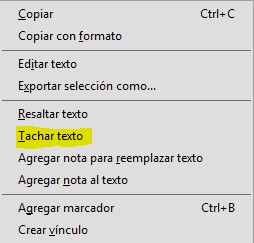 Per barrare il testo tradotto, dovremo selezionare con il puntatore del mouse la parola o la frase tradotta che vogliamo eliminare, fare clic sull'icona corrispondente (o selezionare l'opzione del menu) e premere il tasto "Canc".