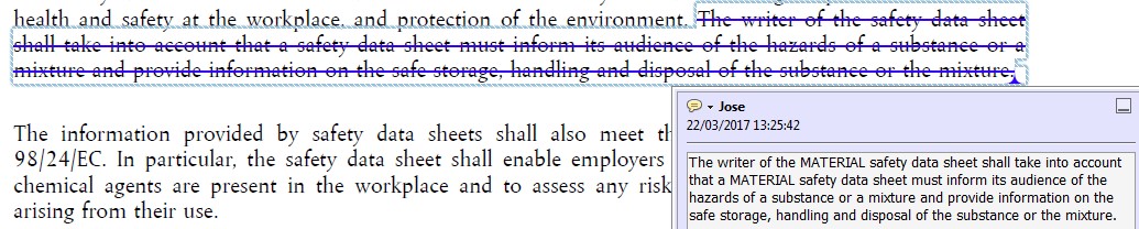 Man mano che i nostri revisori acquisiranno sicurezza ed esperienza con questo metodo di lavoro, affineranno il loro approccio per diventare sempre più efficienti. Se è necessario modificare più di una parola all'interno di una frase, è preferibile selezionare direttamente l'intera frase e apportare la modifica in modo globale. In questo modo, il lavoro del revisore sarà più rapido. Inoltre, aiuterà anche l'impaginatore a inserire la modifica nel layout e il project manager o il traduttore ad aggiornare la memoria di traduzione, cioè il database con le traduzioni della tua azienda.