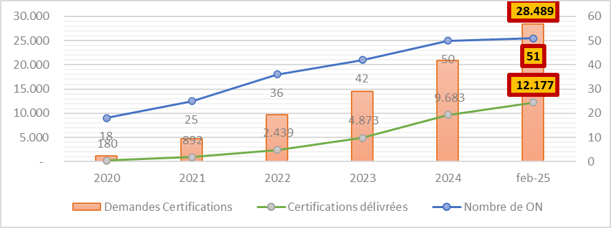 A febbraio 2025, secondo i dati evidenziati dalla Commissione europea, i 51 organismi notificati ufficialmente designati si sono ritrovati a dover gestire un numero di richieste di certificazione che ammontava a 28.500. In quel momento vennero rilasciati oltre 12.000 certificati, cioè il 43%.
